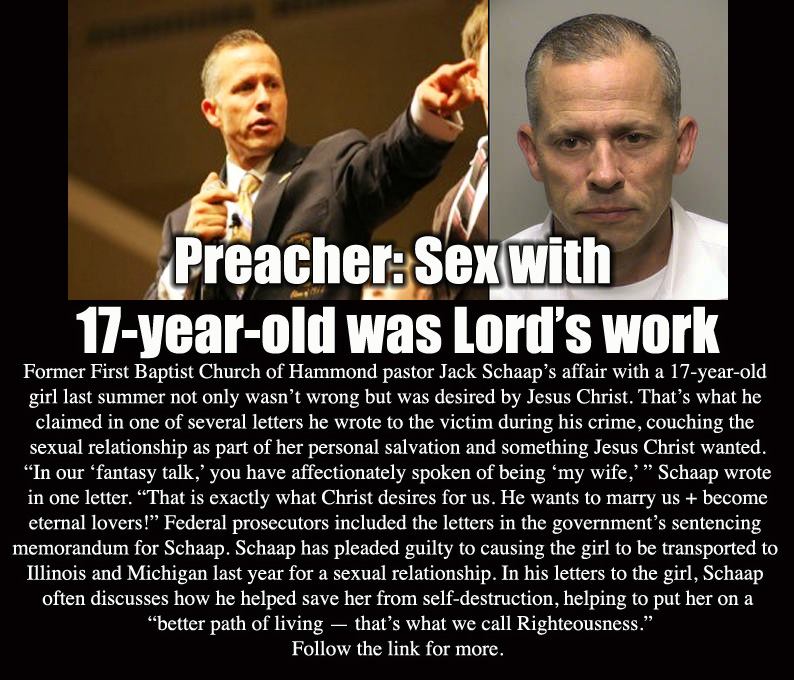 4) Schaap having sex with the teen in his office. During a church youth conference.