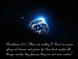 “Thou art worthy, O Lord, to receive glory and honour and power: for thou hast created all things, and for thy pleasure they are and were created” (Re. 4.11).