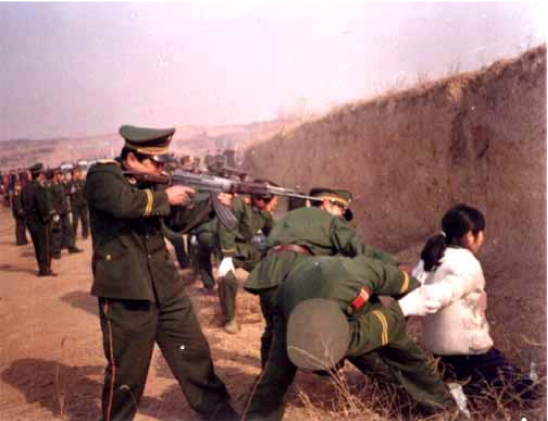 Shortly after this picture was taken, the soldier put a bullet through the head of this teenage girl. Her crime? Telling others about Jesus in public during the Bejing Olympics.