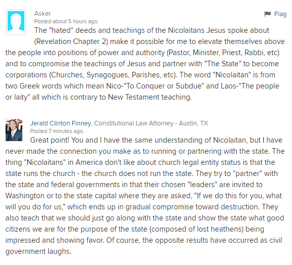 I am deacon in a nondenominational church and in the past few years GOD has brought the issue of church incorporation and many other matters before me regarding how we relate to government. Needless to say it has not been taught thoroughly. When I presented the problem to the “board” last year it was quickly rejected by pastor and most of other deacons except for one as unimportant and was promoting a “works agenda”. I have prayed about the issue and GOD has at least softened my pastors heart in regards to hearing what is involved in unincorporating. Which brings me to thanking you for all the valuable information in scripture and otherwise you have put together on this subject.