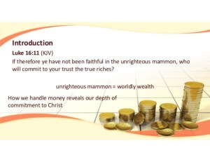 “He that is faithful in that which is least is faithful also in much: and he that is unjust in the least is unjust also in much. If therefore ye have not been faithful in the unrighteous mammon, who will commit to your trust the true riches? And if ye have not been faithful in that which is another man’s, who shall give you that which is your own? No servant can serve two masters: for either he will hate the one, and love the other; or else he will hold to the one, and despise the other. Ye cannot serve God and mammon.” Lk. 16:10-13