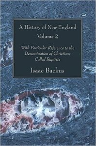 [1] Isaac Backus, A History of New England With Particular Reference to the Denomination of Christians called Baptists, Volume 2 (Eugene, Oregon: Wipf & Stock Publishers, Previously published by Backus Historical Society, 1871), pp. 200-202, and fn. 1, p. 201.