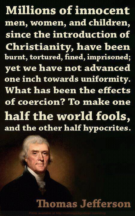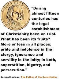 “Because experience witnesses that ecclesiastical establishments, instead of maintaining the purity and efficacy of religion, have had a contrary operation. During almost fifteen centuries has the legal establishment of Christianity been on trial. What have been its fruits? More or less in all places, pride and indolence in the clergy; ignorance and servility in the laity; in both, superstition, bigotry, and persecution. Inquire of the teachers of Christianity for the ages in which it appeared in its greatest luster; those of every sect point to the ages prior to its incorporation with civil policy. Propose a restoration of this primitive state, in which its teachers depended on the voluntary rewards of their flocks, many of them predict its downfall….