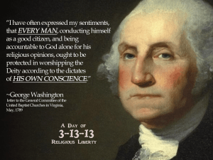 “No more fitting conclusion can be had … than to quote the language of the Father of his country. The days of persecution, of blood and of martyrdom were passed. Civil and soul liberty, the inalienable rights of man, enlargement, benevolent operations, educational advantages, and worldwide missionary endeavor, all had been made possible by the struggles of the past. The Baptists consulted George Washington to assist in the securing freedom of conscience. He replied: