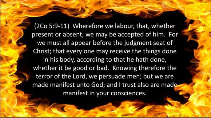 We now arrive at the burning heart of this entire revelation as it concerns the Church—THE JUDGMENT SEAT OF CHRIST. “Wherefore we labour,”—the word means to love and seek for honour (Lange) in what Bengel calls the sole legitimate ambition in the world— “that, whether present or absent, we may be accepted of Him. For”—as the fountain of motive in all holy ambition—“we must“—as a necessity inherent in Diving justice; for the vindication of God’s holiness, and for the satisfaction of our own highest and holiest instincts—“all”—all apostles, all prophets, all martyrs—“appear”—to our own consciences, to all the world, and above all to the Judge; a complete manifestation of all that has transpired within us, or in the external life (Lange)—“before the Judgment Seat of Christ; that every one may receive”—the technical word for receiving wages (Dean Alford)—“the things done in his body”—therefore thoughts and words as well as deeds, since the brain and the tongue are thus also involved—“according to that [plural] he hath done”—works exactly regulating reward: not according to the things that Christ did in His body; nor according to things done out of the body after death—“whether it [the award] be good or bad” (2 Corinthians 5:9-10). In the words of Lange—Paul’s tireless aim to please Christ “can only be fulfilled by his being found approved at that tribunal where he and his fellow believers are shortly to appear; for every action of God’s children during their bodily life must there be judged according to the law of strict righteousness, and each believer must be rewarded according to his good or evil conduct.”