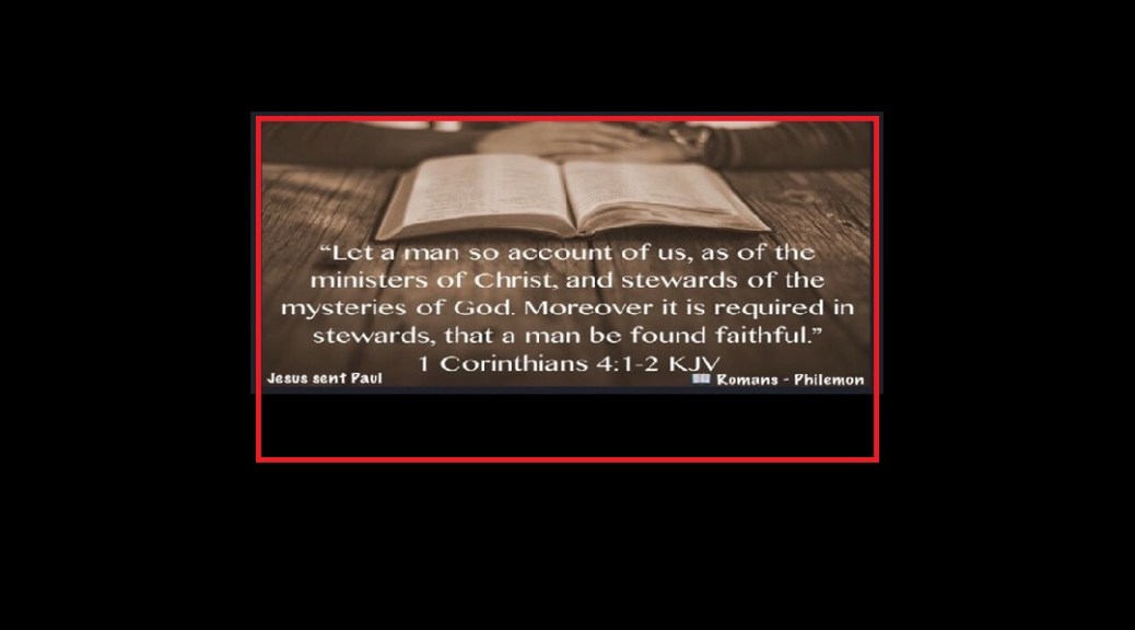 “Let a man so account of us, as of the ministers of Christ, and stewards of the mysteries of God. Moreover it is required in stewards, that a man be found faithful.” 1 Corinthians 4.1-2