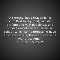 EN[i] Timothy was a preacher with a special position of trust. Timothy was a trustee of a spiritual heritage: “O Timothy, keep that which is committed to thy trust, avoiding profane and vain babblings, and oppositions of science falsely so called:” (1 Ti. 6.20). Likewise, elders, which includes pastors, must meet specific requirements which not every man in a church can meet. (See, for example, Tit. 1.5-9). An elder must hold fast the Word of God, “that he may be able by sound doctrine both to exhort and to convince the gainsayers” (Tit. 1.9-16, 2.2; see also, Ac. 11.30, 14.23, (ordained elders in every church), 15.2, 4, 6, 22-23, 16.4, 20.17, 21.18; 1 Ti. 5.1 (“rebuke not an elder, but entreat him as a father”), 1 Ti. 5.17-19; Ja. 5.14-15; He. 13.7, 17; 1 Pe. 5.1 (Peter the Apostle was an elder, here writing to “the elders who are among you”; 1 Pe. 5.5 (younger to submit to the elder, and all to submit to one another); 2 Jn. 1 and 3 Jn. 1 (John the Apostle was also an elder);