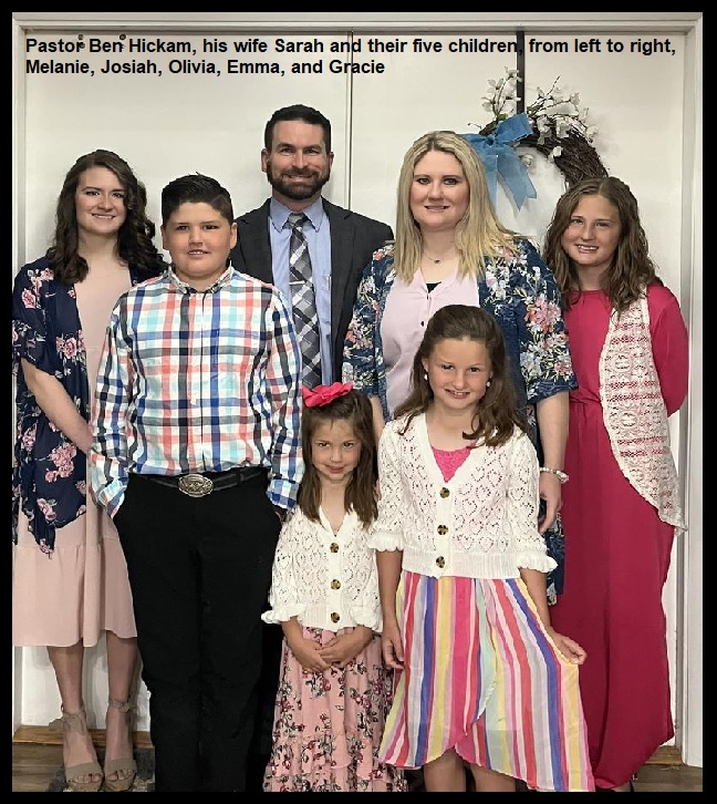 Pastor Larry’s son, Ben Hickam became Pastor when his dad, Larry Hickam, stepped down in July, 2018. Like his dad, his sole authority for all matters of faith and practice (individual, family, and church) is the King James Bible.