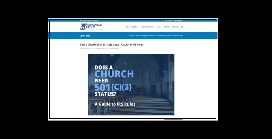 Their article states: “By default, the US government considers churches to be 501(c)(3) organizations automatically, simply by virtue of existing. Because no corporate structure is needed, a church (generally) is a 501(c)(3). …” This conclusion has no basis and is patently false. No law or regulation declares such a thing. Such a conclusion would deny the religious liberty guaranteed by the First Amendment. See, Are Churches Automatically Tax Exempt?