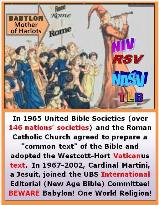 Almost all, or maybe all, English versions of the Bible are based upon the Greek Wescott and Hort Greek translation. If you don’t use the King James Bible, you are probably relying on a Wescott Hort translation. They rejected the infallibility of Scripture; their Greek text makes God a created god; their English version teaches universal salvation; they declared that hell is a place for departed spirits; etc. See, e.g., Wescott and Hort: Translator’s beliefs (Complied and commented by David J. Stewart | January 2011 | Updated October 2016). See also, Theosophy, The Church and Lucifer Worship, The New World Order and the Tower of Babel, A Coming One World Religious View.