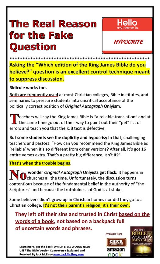 See also, ANSWER TO THE QUESTION, “WHY DO YOU FEEL SO STRONGLY ABOUT THE KING JAMES BIBLE?”