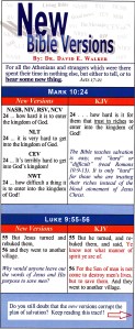 I was at a church service where the pastor used his “Bible” as he preached. His Bible was made up of the KJB on one side and an interpretation (another “Bible” version) on the other. Sometimes he read from the KJV, sometimes from the other. I noticed in my KJB that the verses he read from the other “Bible” were different. He chose the one he liked the best. In other words, to him, there was no word of God. Utter confusion. Total heresy. No wonder many American “churches” are nothing more than social clubs or nightclubs.