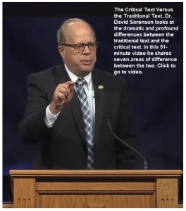 The Critical Text Versus the Traditional Text (Dr. David Sorenson looks at the dramatic and profound differences between the traditional text and the critical text. In this 51-minute video he shares seven areas of difference between the two.)