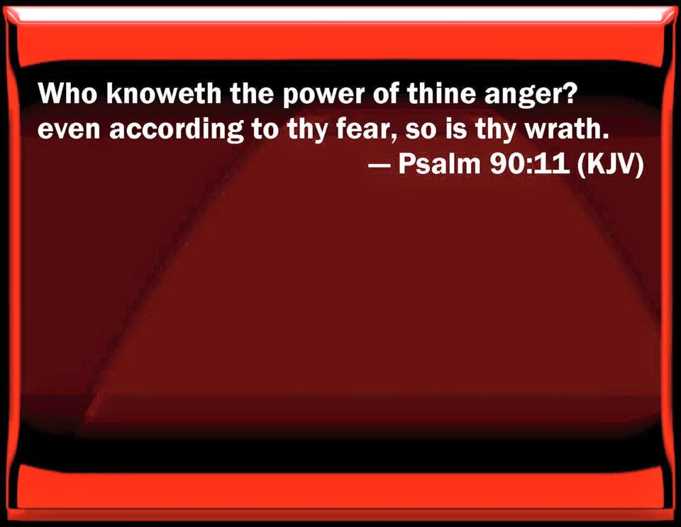 - Ps. 90:7-9 “For we are consumed by thine anger, and by thy wrath are we troubled. Thou hast set our iniquities before thee, our secret sins in the light of thy countenance. For all our days are passed away in thy wrath: we spend our years as a tale that is told.” Ps. 90:11 “Who knoweth the power of thine anger? even according to thy fear, so is thy wrath.”